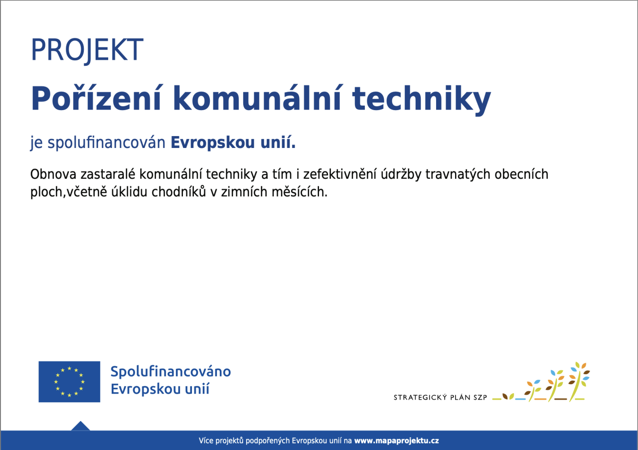 Obnova zastaralé komunální techniky a tím i zefektivnění údržby travnatých obecních ploch, včetně úklidu chodníků obce v zimních měsících.