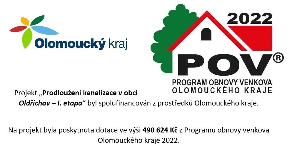 Projekt ,,Prodloužení kanalizace v obci Oldřichov – I. etapa" byl spolufinancován z prostředků Olomouckého kraje.